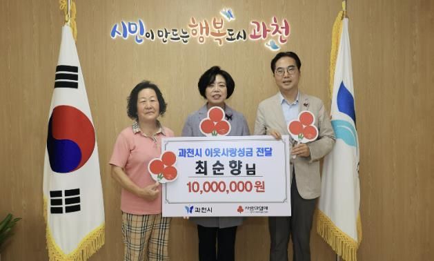 [와이뉴스] 꾸준한 기부로 이웃사랑을 실천하고 있는 최순향 씨가 올해도 과천시에 1천만 원의 기부금을 전달했다.
