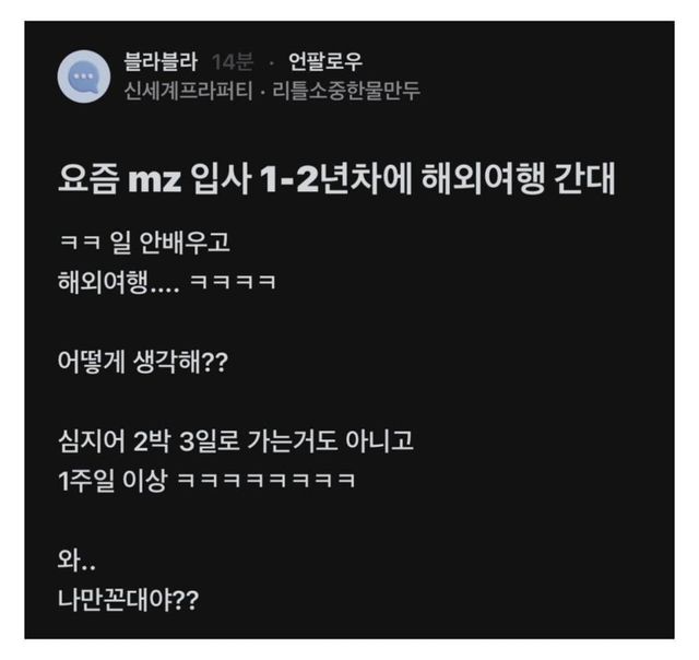 본인연차 쓰는건데 달나라를 가든 무슨 상관? VS일주일 몰아서? 미쳤네두개의 의견으로 나뉘는 중