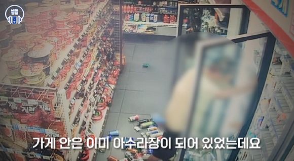 직원이 담배를 건네주자 이번엔 종량제 봉투를 달라고 하더니 직원의 손에서 빼앗듯이 가져가 물건을 바닥에 내려놓은 남성은 음료와 주류가 있는 냉장고로 향했다. 이윽고 남성은 냉장고 안에 진열돼 있는 음료와 술병을 모조리 꺼내 바닥에 던졌다.