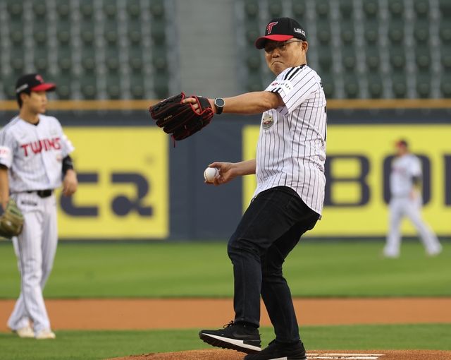 지난 4월 16일 서울 잠실야구장에서 열리는 프로야구 롯데-LG 경기에 앞서 박항서 전 베트남 축구 대표팀 감독이 시구하고 있다. / 연합뉴스