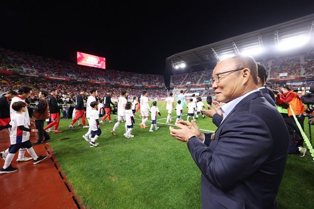 지난해 10월 17일 경기도 수원월드컵경기장에서 열린 축구대표팀 한국과 베트남의 친선경기에서 박항서 전 베트남 감독이 경기장에 들어서는 베트남 선수들을 격려하고 있다. / 연합뉴스