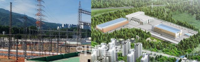 하남시 감일동 소재 동서울 변전소 옥내화 전후 모습.(자료=한국전력공사)