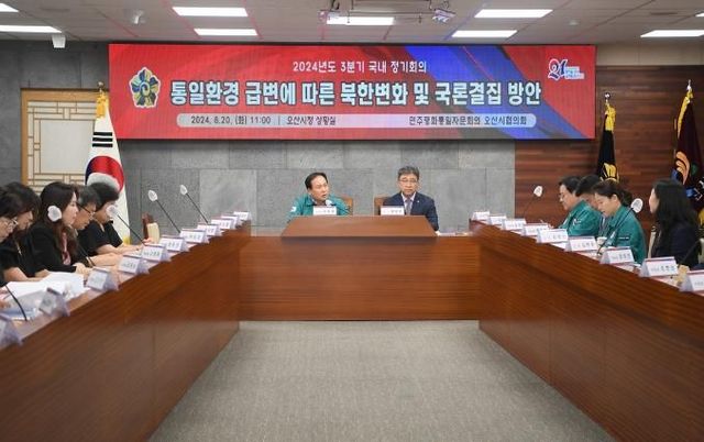 [와이뉴스] 민주평화통일자문회의 오산시협의회는 20일 오산시청 상황실에서 2024년 3분기 정기회의 및 통일의견수렴 회의를 개최했다.