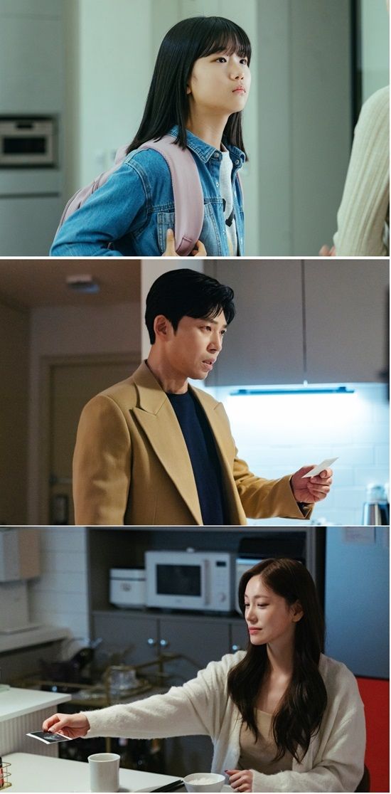 그런 가운데 공개된 사진 속 가사 조사를 앞에 둔 차은경과 김지상의 표정에서 수많은 감정이 스친다. 딸에게 빈자리뿐인 엄마였던 차은경은 아빠 김지상과의 시간을 보내러 가는 김재희의 모습에 속이 편할 리 없다. 면접 교섭을 위해 김재희를 데려가고자 차은경 집에 방문한 김지상의 표정에도 복잡한 심경이 읽힌다. 치열해지고 있는 이혼 공방 속 김재희의 마음은 어디로 향할지, 그의 선택에 이목이 집중된다.