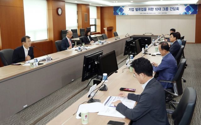 22일 기업 밸류업(기업가치 제고)을 위한 10대 그룹 간담회에 정은보 한국거래소 이사장과 한국거래소 관계자, 10대 그룹 재무담당자들이 참석했다. 사진=한국거래소
