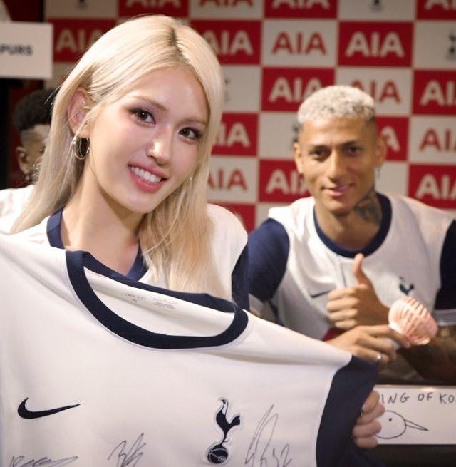 토트넘은 21일(한국시간) 구단 공식 사회관계망서비스(SNS) 계정을 통해 "AIA 스퍼스 허브가 주최한 이벤트에서 토트넘 선수들과 만난 전소미"라며 가수 전소미가 토트넘 선수들과 함께 찍은 사진들을 게시했다.