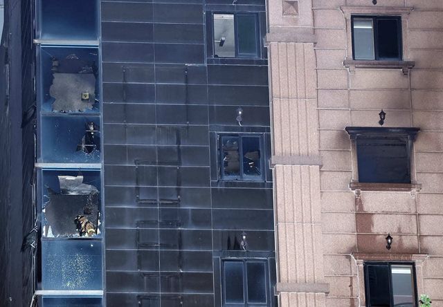 22일 오후 경기 부천시 원미구 중동의 한 숙박업소에서 화재가 발생했다. 이 사고로 한국인 7명이 숨지고 부상자 12명이 발생했다. / 경기도소방재난본부 제공