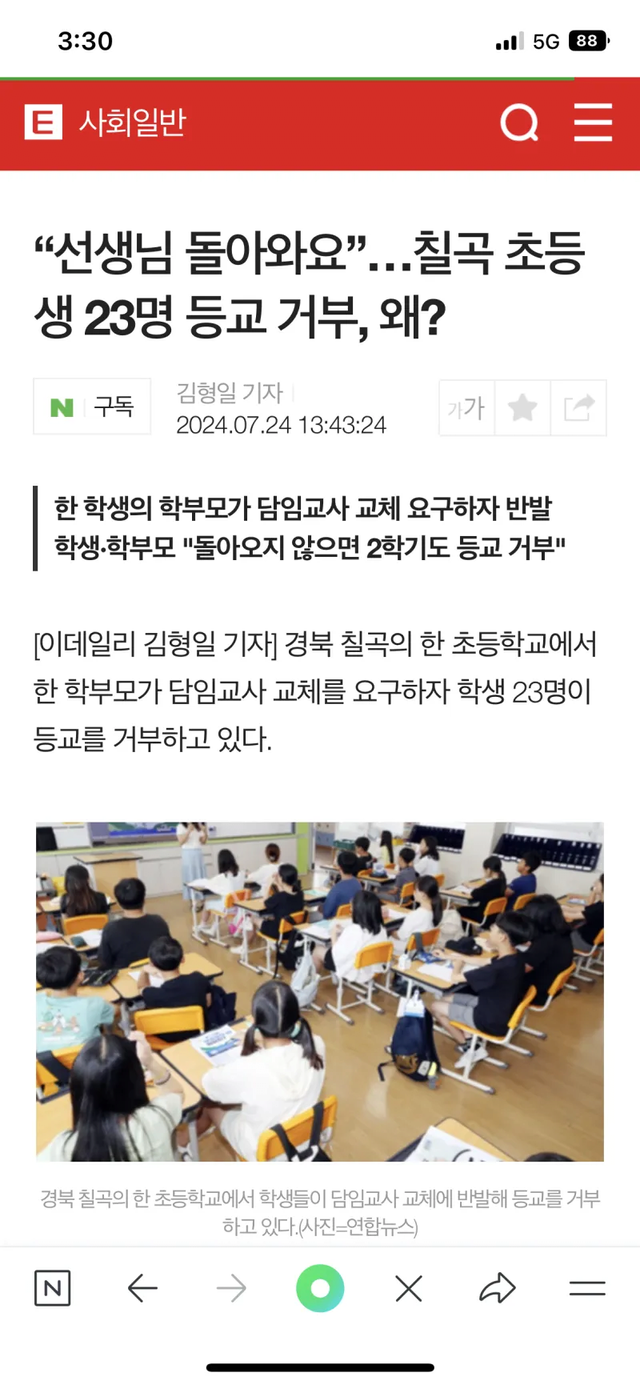 - 진상이 담임교체 등 요구