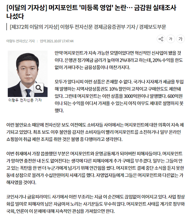 경제보도부문으로 상 수상한거라서 경제탭에 올림