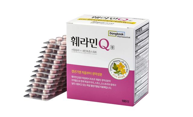여성 갱년기 치료제 부문 15년 연속 판매 1위(아이큐비아 데이터 기준)인 동국제약의 ‘훼라민큐’는 호르몬제가 아니면서도 거의 동등한 갱년기 증상 개선 효과를 나타내며, 갱년기 수면장애, 발한, 안면홍조와 같은 신체적 증상과 불안, 우울감과 같은 심리적 증상을 동시에 개선하면서도 호르몬제가 유발할 수 있는 유방암, 심혈관 질환 등 부작용이 없어 안심하고 복용 가능하다.