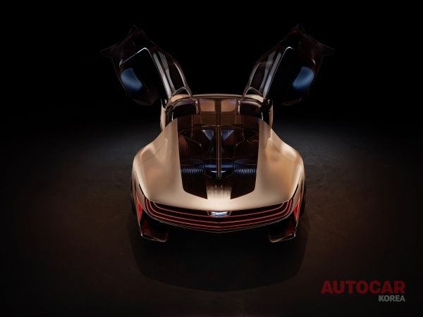 ‘오퓰런트 벨로시티’에는 확장된 형태로 개방이 가능한 대형 버터플라이 도어가 적용되었다. 특유의 수직형 라이팅 시그니처는 테일램프와 헤드램프에 각인됐으며, 그릴에 적용된 크리스탈 플루트 디테일과 함께 차의 존재감을 과시한다.
