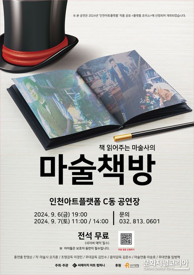 문화저널코리아 김영일 기자 | 오는 9월6일부터 7일까지 이틀간, 인천아트플랫폼에서 마술공연전문회사 씨에이치아트컴퍼니의 공연 ‘책읽어주는 마술사의 마술책방’이 진행될 예정이다.