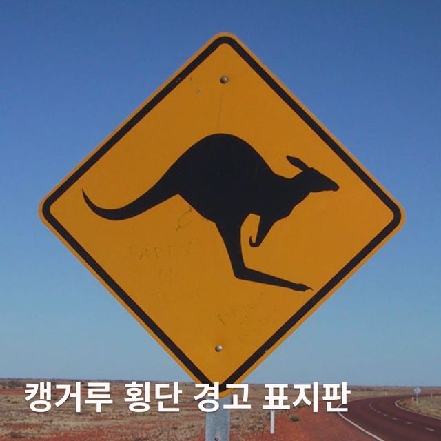 호주 - 캥거루 횡단 경고 표지판