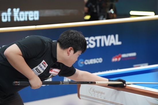 (엑스포츠뉴스 이정범 기자) '2024 월드 3쿠션 서바이벌' 손준혁 선수의 경기 모습이 눈길을 끈다.