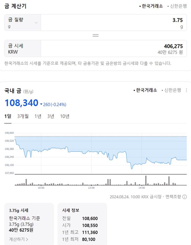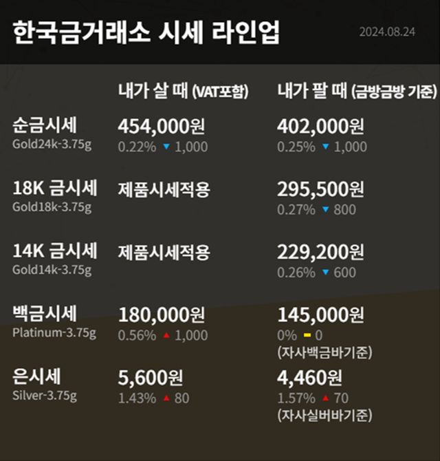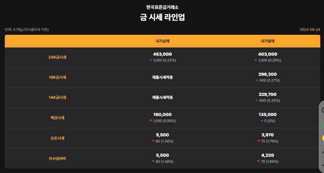 순금(24K) : 매입가 45만 4000원 / 매도가 40만 2000원