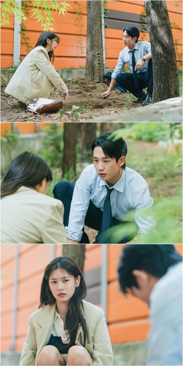 최승효와 배석류가 혜릉동 옆집살이를 예고한 가운데, 이날 공개된 사진은 모교인 혜릉고 뒷산에 간 두 사람의 모습을 담고있다. 팔까지 걷어붙이고 쪼그려 앉아서 땅 파기에 열중하는 최승효, 그런 그가 못마땅한 듯 손을 놓고 바라보는 배석류가 대비를 이룬다. 이어진 사진에는 두 사람이 혜릉고 수영장에서 포착돼 눈길을 끈다. 물 안에서 낡고 녹슨 타임캡슐을 쥐고 있는 최승효, 물 밖에서 무표정으로 '째릿'하고 눈을 흘기는 배석류의 대치 상황이 심상치 않다. 선공개 영상에서 타임캡슐을 찾아 나선 이들의 봉인 해제식에도 기대감이 고조된다.