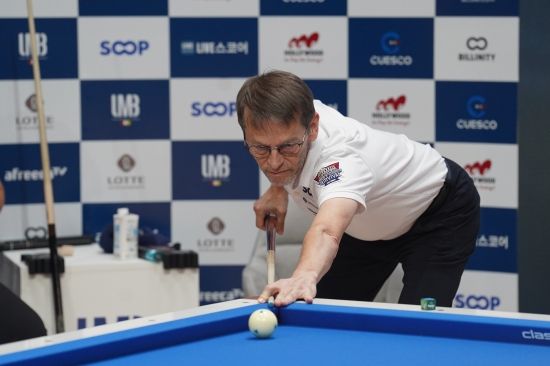이날 대회에 나선 토브욘 블롬달 선수(스웨덴)의 경기 모습은 당구 팬들의 시선을 끌었다.