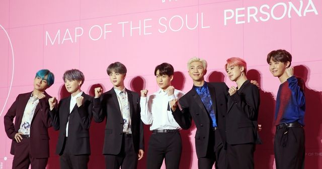 방탄소년단(BTS)이 2019년 4월 17일 오전 서울 중구 동대문디자인플라자에서 열린 새 앨범 '맵 오브 더 솔 : 페르소나'(MAP OF THE SOUL : PERSONA) 발매 글로벌 기자간담회에서 포즈를 취하고 있다. / 연합뉴스