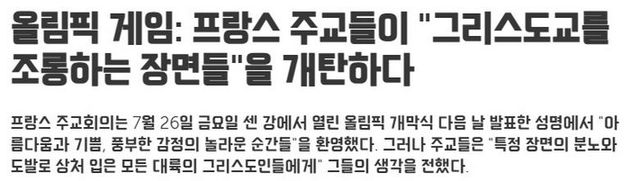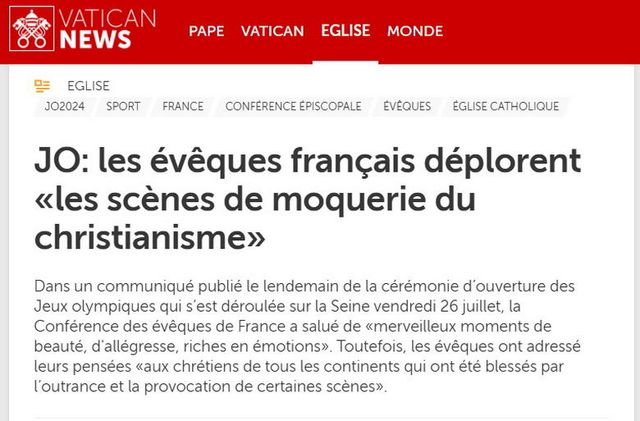 카톨릭에서 올림픽 개막식에 대해 직접 모욕 및 조롱이라고 입장 발표..