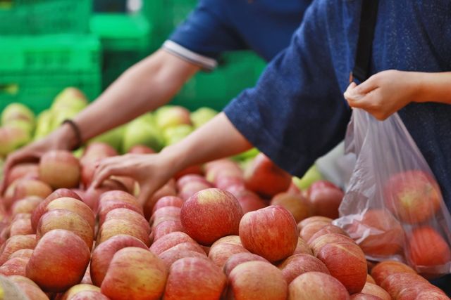 지난달 28일 서울 시내 한 대형마트에서 시민이 사과를 고르고 있다. / 연합뉴스