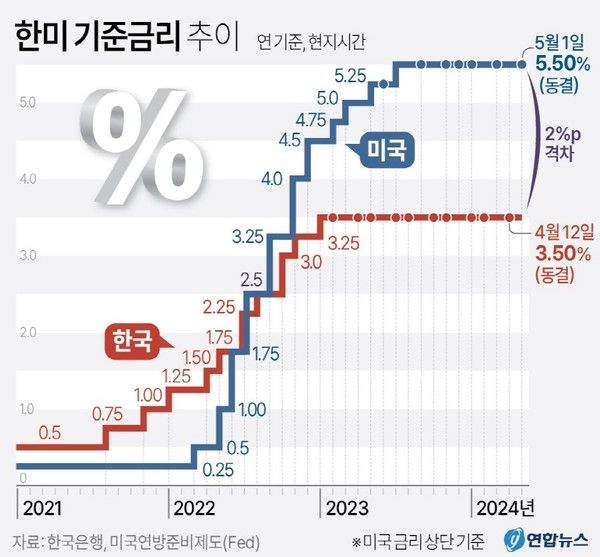 연준은 코로나19 팬데믹 부양책과 공급망 교란 등 충격 여파로 물가가 치솟자 이에 대응하기 위해 2022년 3월부터 지난해 7월까지 기준금리를 22년만에 가장 높은 수준인 5.25∼5.50%로 높인 바 있다.