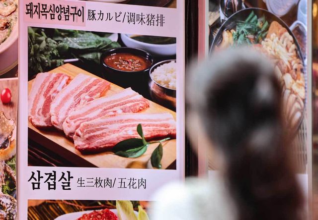 서울 중구 명동거리 음식점 앞에 삼겹살 등 메뉴 안내문이 놓여 있는 모습. / 뉴스1
