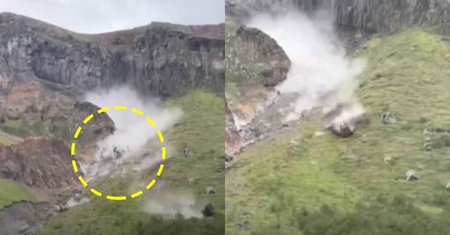 지난 21일, 중국 측 장백산 풍경구에서 거대한 바위들이 하늘로 치솟는 뿌연 연기를 일으키며 아래로 굴러떨어졌다. 이 모습에 놀란 관광객들은 황급히 대피했다.