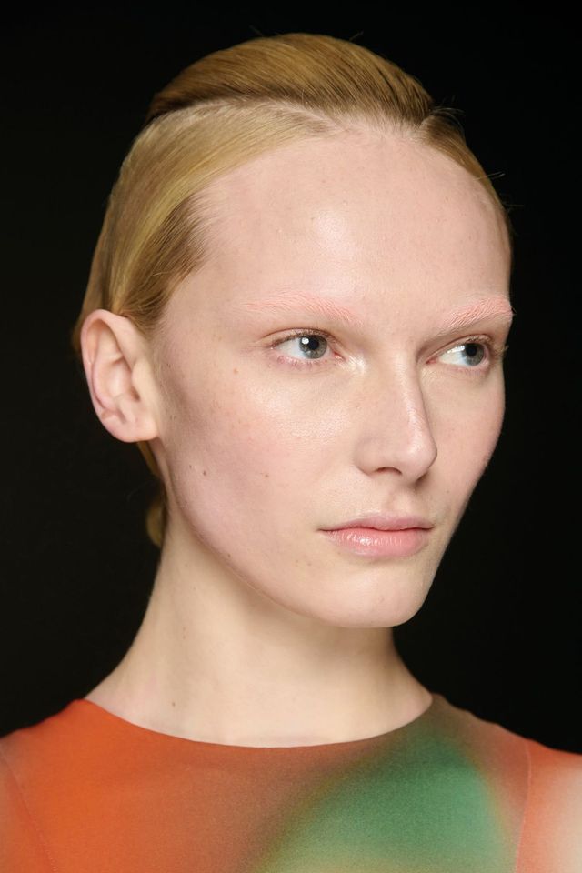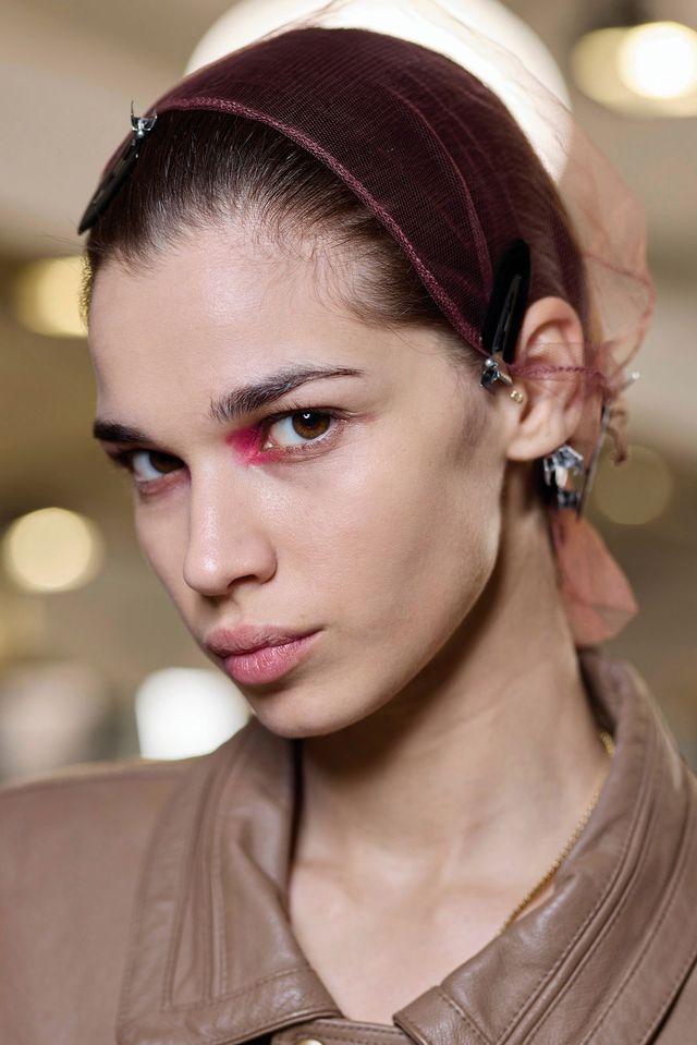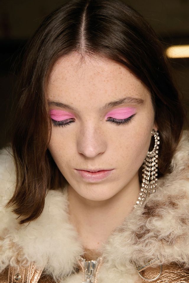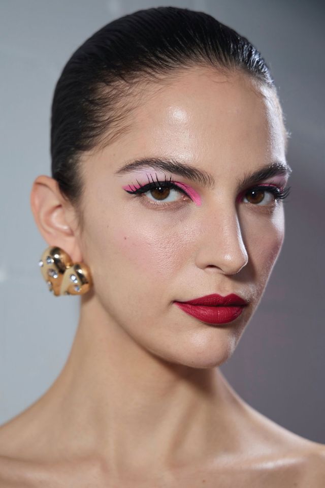 지난여름을 강타한 바비코어의 영향 때문일까? 핑크를 대하는 과감한 태도가 필요해 보인다. 정형화되지 않은 방법으로 활용된 핑크를 쉽게 포착할 수 있으니까. 아이홀과 눈머리에 라즈베리 핑크 피그먼트를 더한 디올, 핑크로 눈썹을 물들인 델코어, 채도 높은 컬러로 눈 위쪽을 장식한 캐롤리나 헤레라와 마르케스 알메이다가 인상적이다.