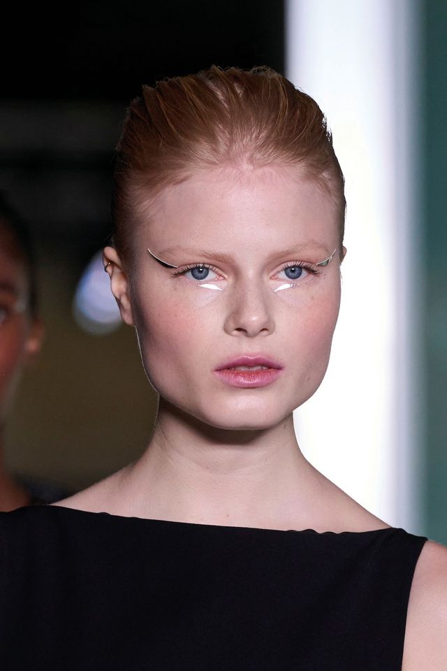 메탈릭한 실버를 다채롭게 사용한 메이크업 아티스트의 센스를 엿보는 재미가 쏠쏠하다. 메탈 스티커를 통해 ‘쇠맛’을 표현한 나임 칸, 실버 직선을 여러 겹 얹어 신비로운 매력을 더한 보라 아크수, 눈머리와 눈썹 아래에 실버를 칠해 SF영화에 나올 법한 얼굴을 완성한 아벨라노 등 미리 공유한 듯 어느 하나 닮은 구석이 없다. 해리스 리드 쇼 백스테이지를 지휘한 소피아 틸버리(Sofia Tilbury)는 아이홀, 눈머리, 언더라인은 물론 입술 위에도 메탈의 기운을 불어넣어 인형처럼 과장된 느낌을 의도했다고 설명한다.