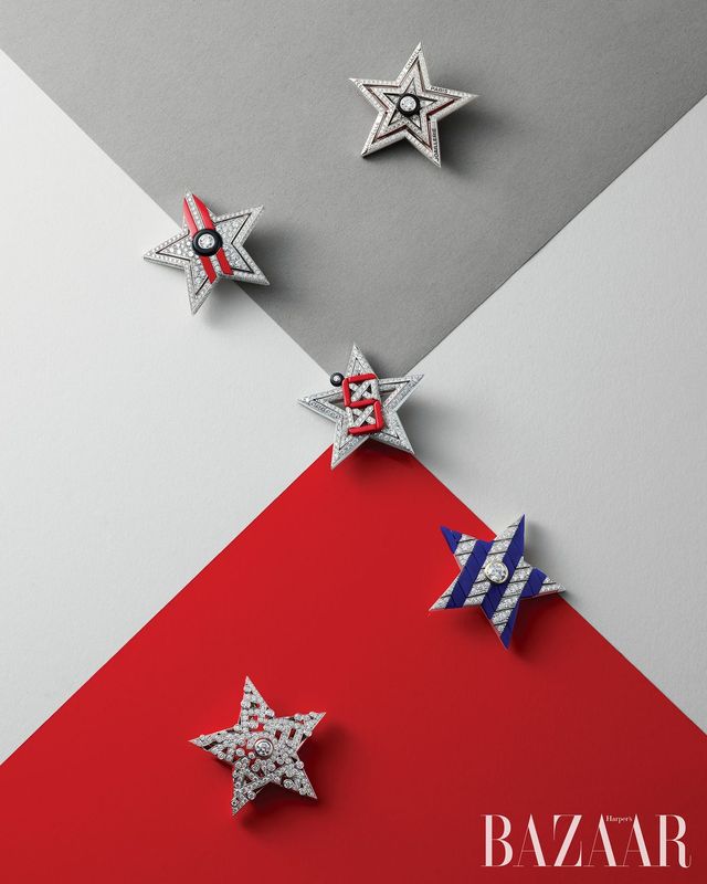 브릴리언트 컷 다이아몬드와 컬러 래커로 하우스의 아이코닉한 요소를 구현한 ‘아이콘 콜렉터’ 브로치는 모두 Chanel High Jewelry.