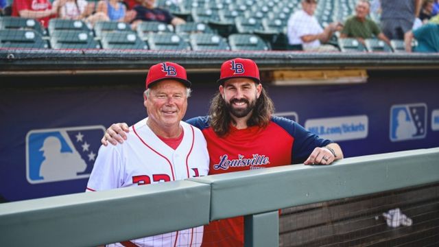 아버지 팻 켈리(왼쪽)와 LG 트윈스 출신 케이시 켈리. /사진=루이빌 배츠 구단 공식 SNS