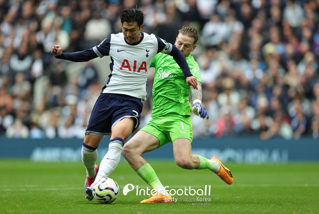 두 번째 골까지 터졌다. 전반 25분 최전방에 있던 손흥민은 에버턴 수비수가 조던 픽포드 골키퍼에게 백패스하는 것을 보고 빠르게 압박했다. 픽포드 골키퍼가 반대쪽으로 공간을 만들기 위해 볼 터치를 길게 가져갔는데 이 틈을 놓치지 않고 뛰어가 탈취해냈다. 빈 골대에 밀어넣어 리그 1호 골을 만들어냈다.