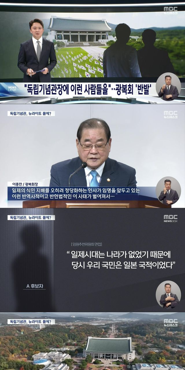 보훈부는 일제 식민 지배 찬양 인물을 대한민국 독립기념관장에