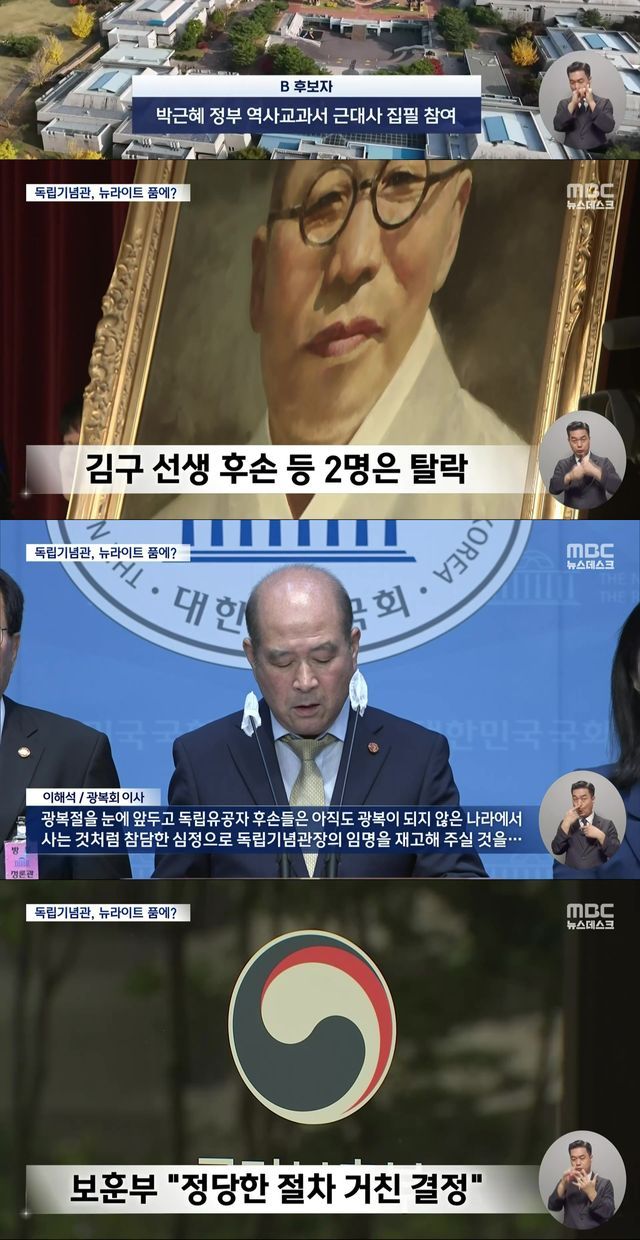 독립기념관장 임명 후보가 2명인데,