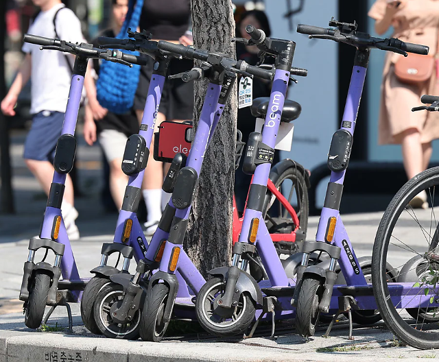 在路边停放的共享电动滑板车【图片提供 韩联社】