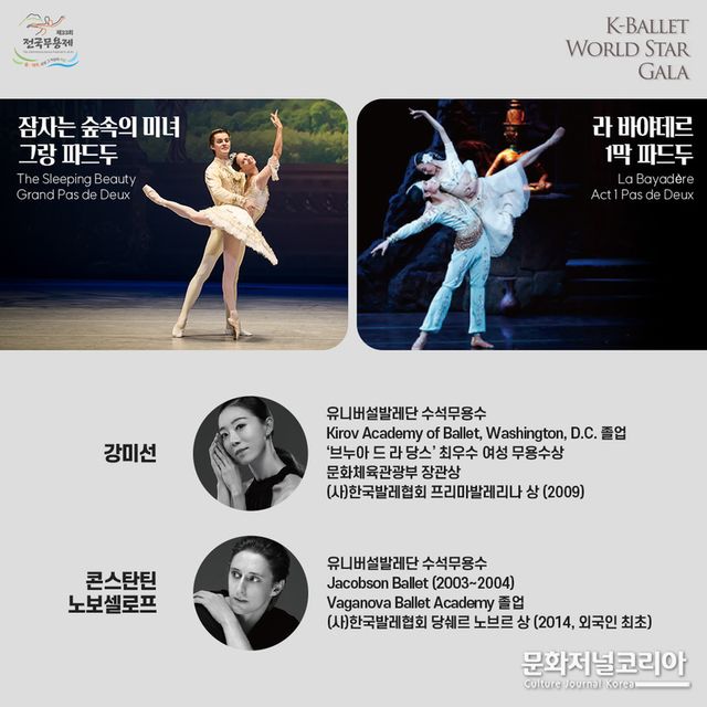 제33회 전국무용제의 사전축제 중 하나인 K-발레 월드 스타 갈라는 한국을 대표하는 최정상 발레 스타들이 펼치는 10여 개의 다채로운 고전발레와 현대발레 레퍼토리를 영상해설과 함께 한 자리에서 만나볼 수 있는 최고 수준의 갈라 공연이다.