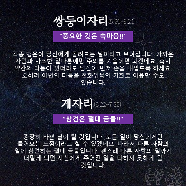 Δ 쌍둥이자리 : 중요한 것은 속마음!!