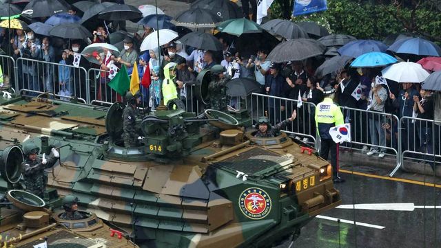서울 세종대로 일대에서 건군 75주년 국군의날 시가행진이 진행되고 있다. / 뉴스1