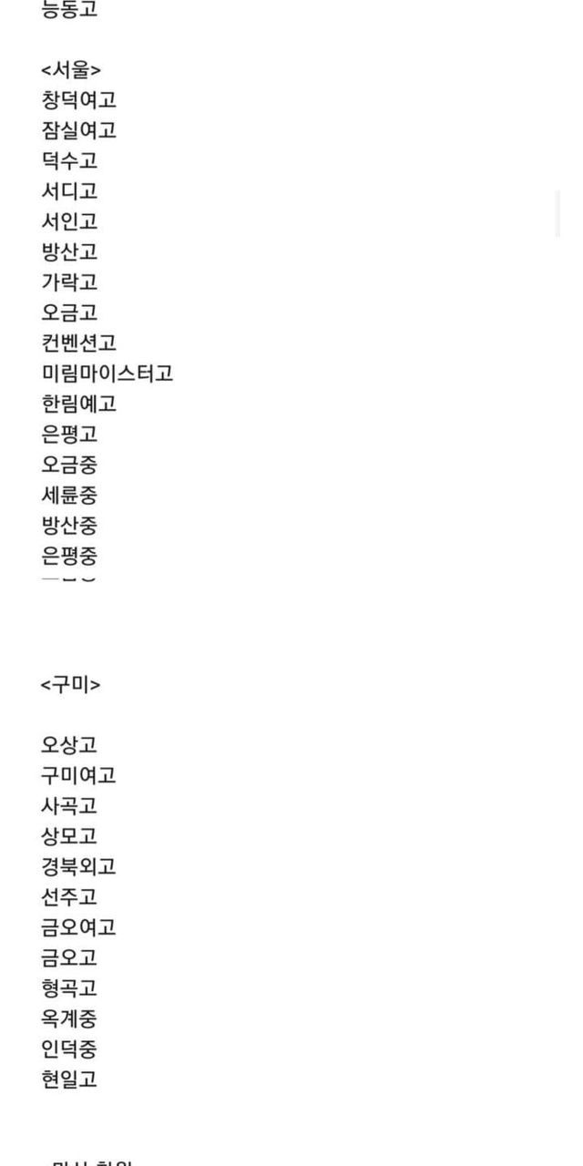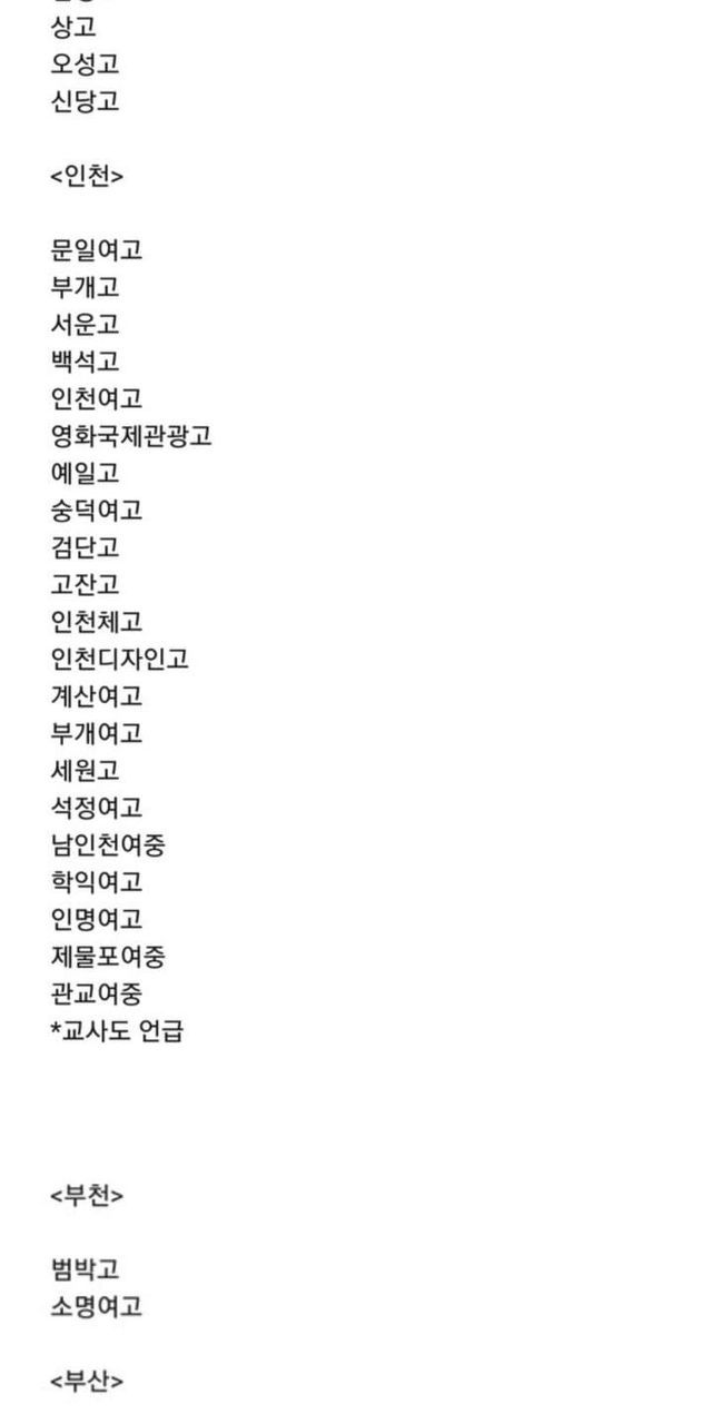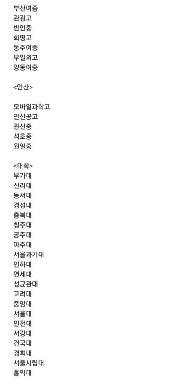 위에있는 리스트는 피해가 확인된 학교들이고 더 있기도함