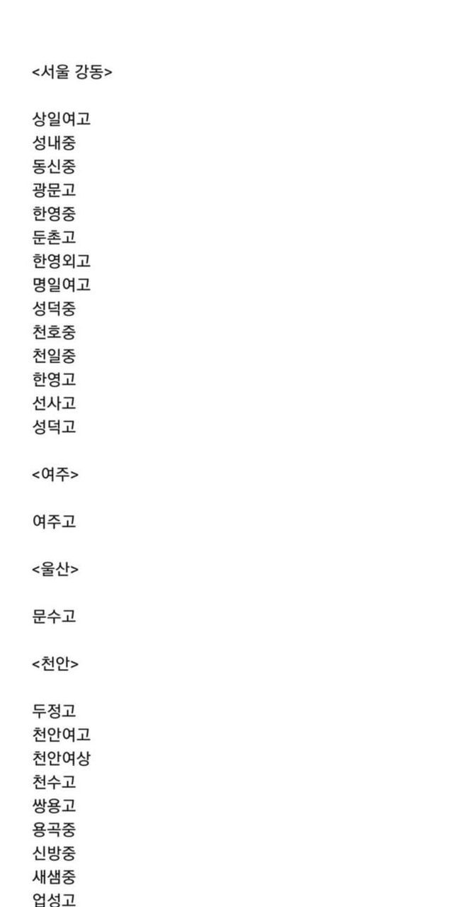 거의 전국에 있는 MH세대들이 저 학교들의 여학생들을 상대로 딥페이크 야짤을 공유하는 방을 만든것으로 추정되며