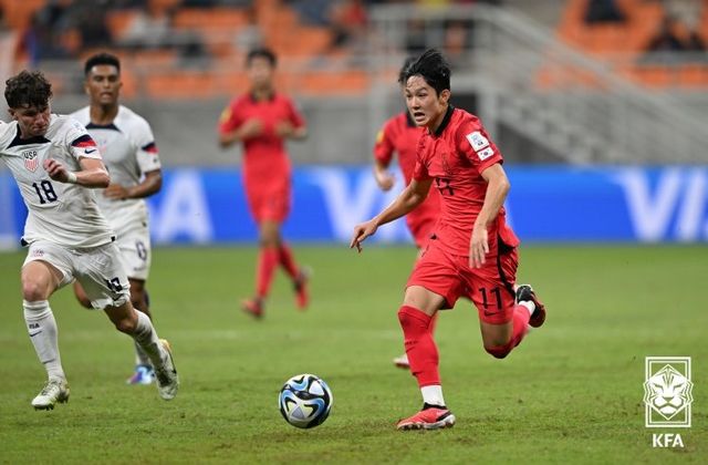 지난 국제축구연맹(FIFA) 17세 이후 (U-17) 월드컵 미국전 당시 양민혁. 사진=대한축구협회