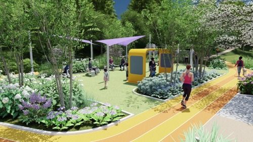 이번에 개발한 조경시설물은 자가발전사이클로 전력을 생성해 야간 조명으로 활용할 수 있고, 생성된 전력을 통한 간단한 게임을 할 수 있도록 구현해 운동, 놀이, 휴식 세가지를 한번에 즐기며 탄소저감을 실천할 수 있는 통합 조경시설물이다.
