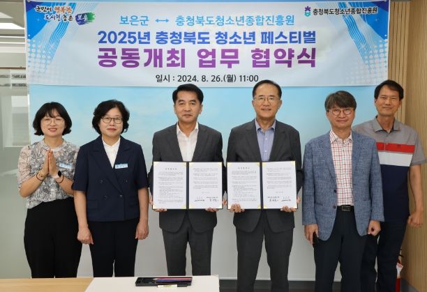 [파이낸셜경제=김영란 기자] 보은군은 26일 군청 소회의실에서 충청북도청소년종합진흥원과 2025년 ‘충청북도 청소년 페스티벌의 공동 개최’를 위한 업무협약을 체결했다.