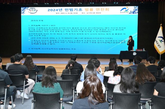 | ▲ 울산 남구(구청장 서동욱)는 26일 소속 공무원들을 대상으로 ‘공무원이 알아야 할 민법 기초 교육'이라는 주제로 법률 연찬회를 실시했다. |