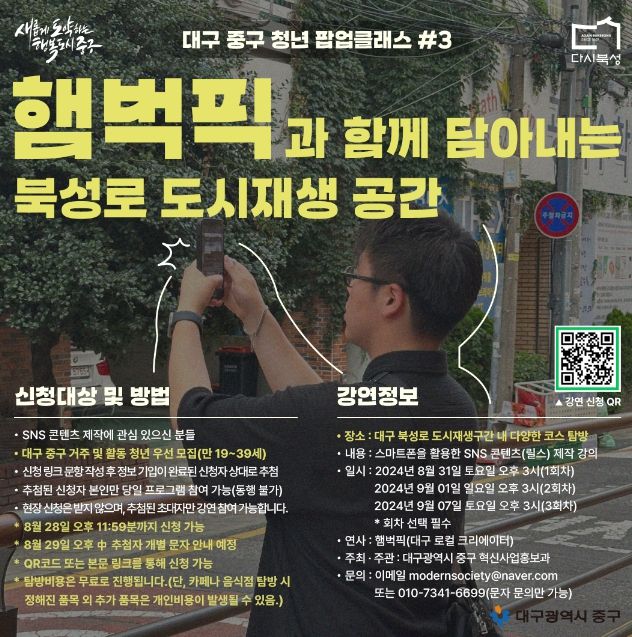 | ▲ 청년팝업 세 번째 클래스 인플루언서와 함께하는 북성로 탐방 및 숏폼 영상 제작 |