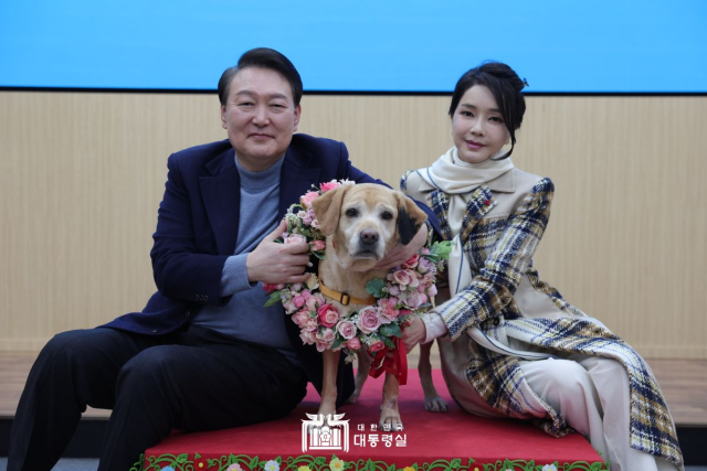 이 강아지는 대통령 부부가 키우는 퍼스트 도그 '새롬이'를 빼닮았다. '새롬이'는 은퇴 안내견으로 2022년 12월 윤 대통령 부부에게 입양됐다.