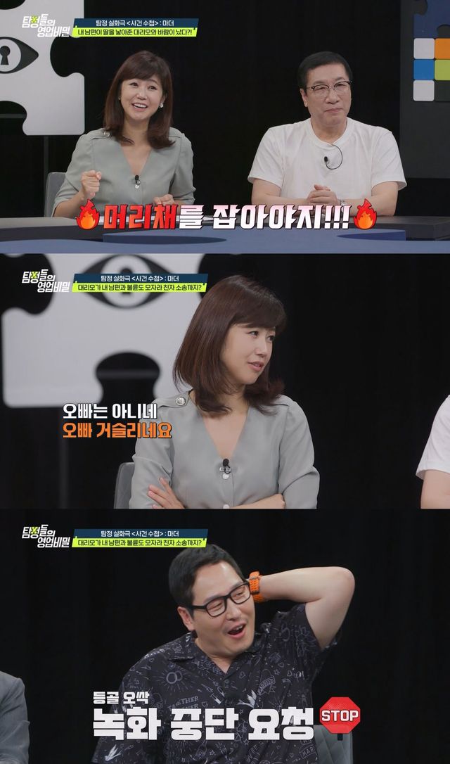 강수정이 “남편이 꼬셨겠죠?”라며 혀를 차자, 데프콘은 “요즘 (남편이랑) 안 좋아요?”라고 우스갯소리를 던졌다. 강수정은 “되게 감정 이입되네요”라며 고개를 절레절레 저었고, 급기야 "나 이제부터 남편을 ‘오빠’라고 안 부를 거다. ‘오빠’ 거슬린다"고 과몰입하는 모습을 보였다.