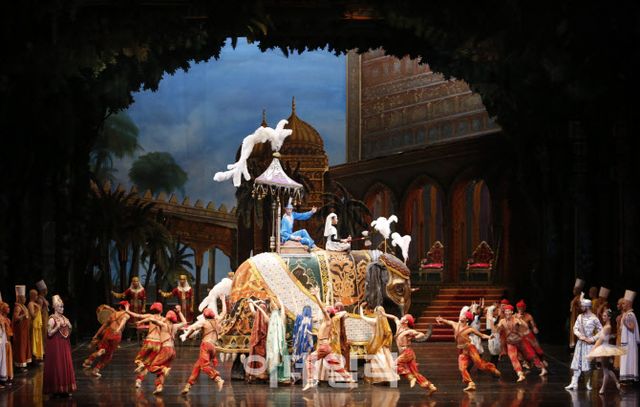 인도 황금제국을 배경으로 무희 니키야와 전사 솔로르 등 주인공들의 사랑과 배신, 복수와 용서를 그린 작품이다. 이국적인 배경과 극적인 이야기, 150여 명의 출연진과 400여 벌의 의상 등 화려한 볼거리를 갖춰 ‘블록버스터 발레’로 불린다. 유니버설발레단이 ‘라 바야데르’를 공연하는 것은 2018년 이후 6년 만이다
