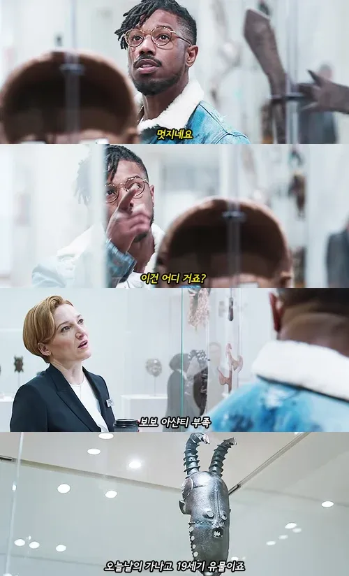 박물관의 도슨트가 킬몽거한테 유물을 설명해주는 장면