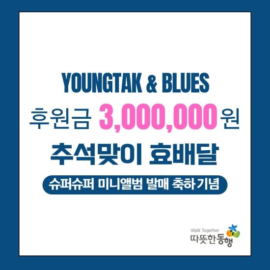 사회복지법인 '따뜻한 동행'은 "어려운 시기에 기부가 줄고 있어 걱정이 많았는데 추석을 맞이해 적극적으로 도움 주신 ‘영탁앤블루스’에게 진심으로 감사하다"라고 말했다.